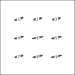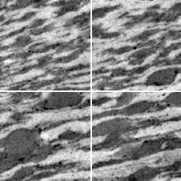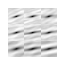 Here: Image size = 256 · 256, ACF size = 128 · 128 ⇒ ACF center size = 64 · 64. For ACF centers, shift between ACFs = 1/2 ACF size (= ACF center size) ⇒ matrix of 3 · 3 ACFs |