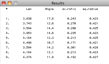 ANALYZE ACFS[D] calculates perimeter, best fit ellipse (axial ratio and orientation) and equivalent radius of thresholded ACFs.